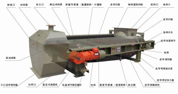系統主要部件有進料斗、給料機機體、傳動裝置、荷重傳感器、測 速傳感器、變頻器、稱生積算儀表,可通過RS485串行或現場總線通訊接 口與上層DCS系統聯接,實現DCS控制。
