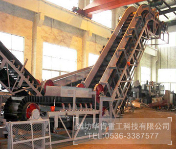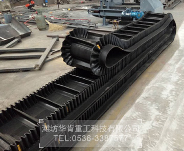 1、該機(jī)為一般用途的散狀物料連續(xù)輸送設(shè)備,但采用的是具有波狀擋邊和橫隔板的輸送帶。因此,特別適用于大傾角及垂直90°輸送。